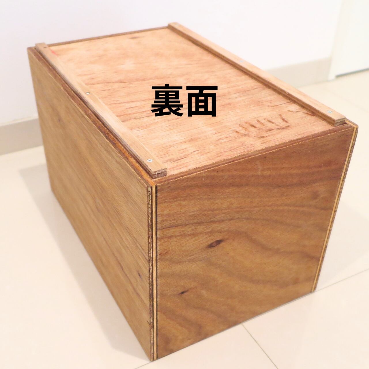 ◆2本のべニア板(裏) ⇒ 積み重ね時にズレないよう箱同士を固定!