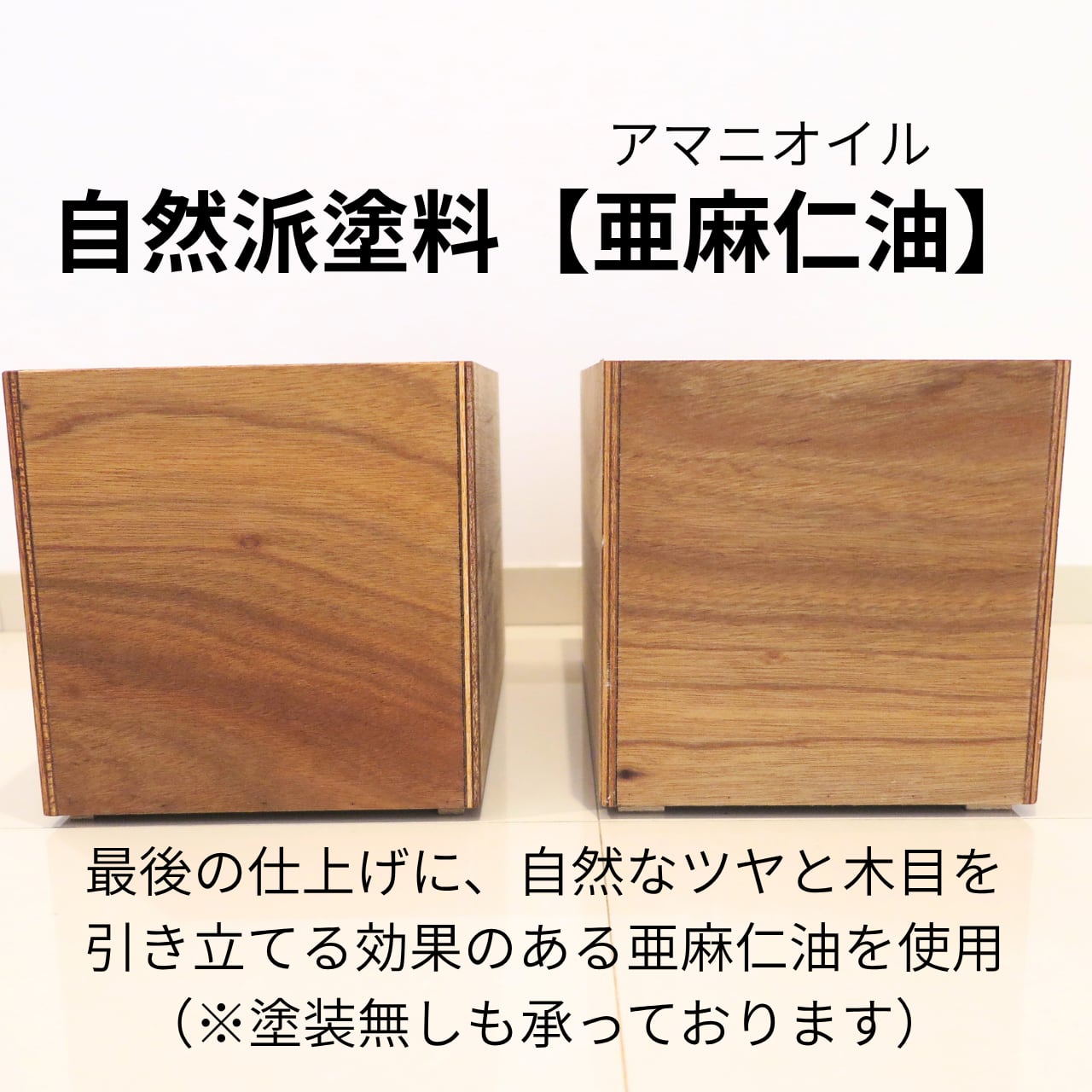 ◆オイル仕上げ ⇒ 木目や色味を存分に味わえる自然塗料の亜麻仁油を使用