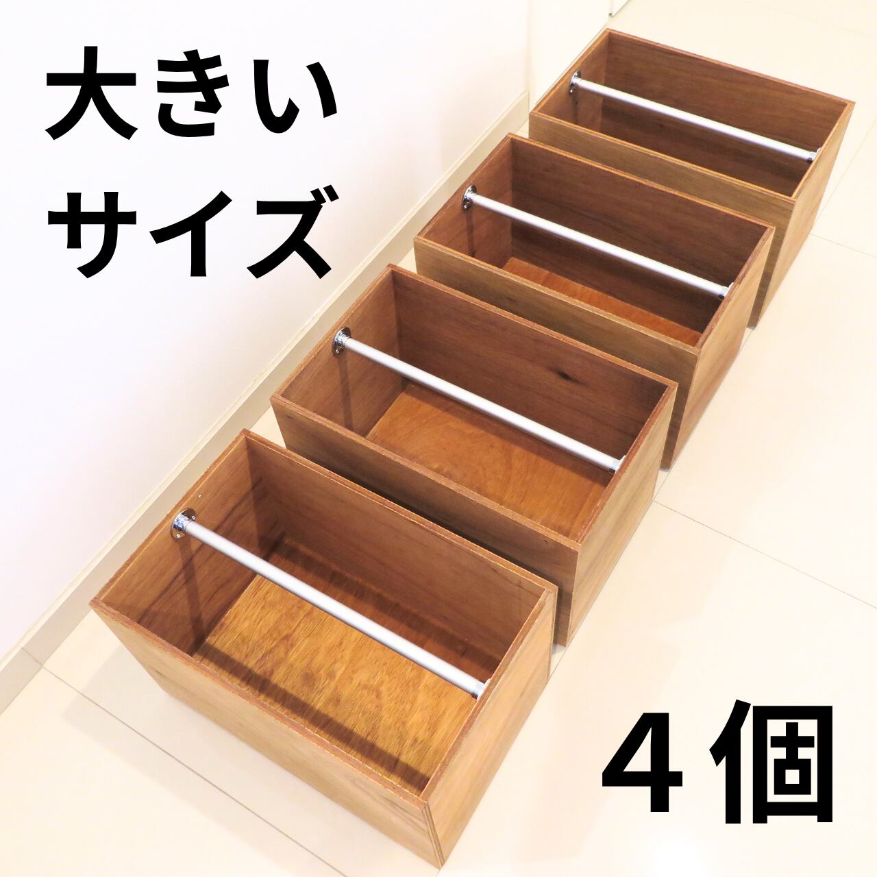【車塚工作所】手作りの木箱 大きいサイズ 4個 (積み重ね可能)
